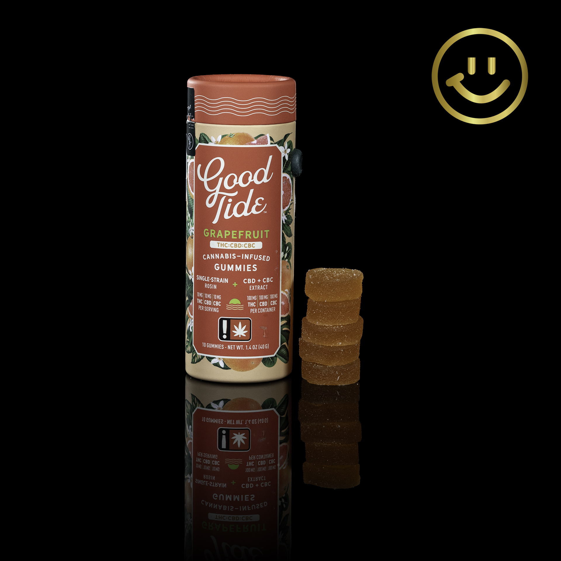 You're going to love these new Good Tide cannabis-infused gummies from WYLD—especially this blissful Grapefruit with its 1:1:1 balance of THC, CBD, and CBC. Good Tide leverages everything WYLD has learned about crafting cannabis treats to deliver something truly exceptional. Good Tide gummies are produced with a carbon neutral footprint and 100% renewable energy, right here in Oregon. What's more, their packaging is fully recyclable and compostable—no plastic!