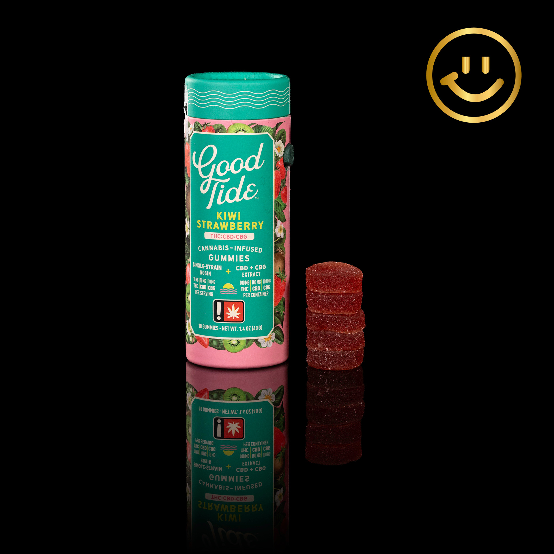 You're going to love these new Good Tide cannabis-infused gummies from WYLD—especially this refreshing Kiwi Strawberry with its 1:1:1 balance of THC, CBD, and CBG. Good Tide leverages everything WYLD has learned about crafting cannabis treats to deliver something truly exceptional. Good Tide gummies are produced with a carbon neutral footprint and 100% renewable energy, right here in Oregon. What's more, their packaging is fully recyclable and compostable—no plastic!