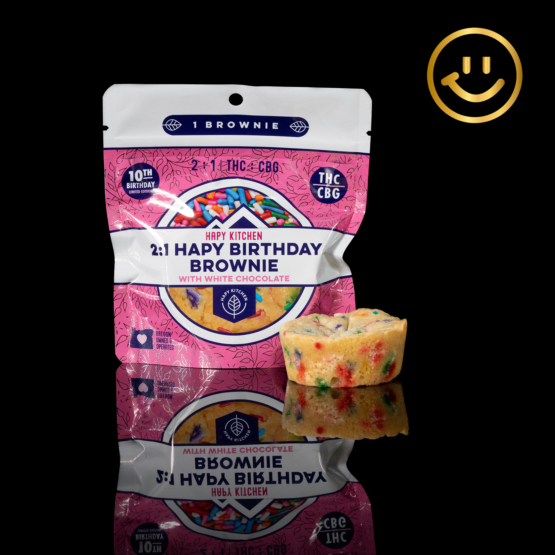 Celebrate ten years of sweet highs and serious flavor with Hapy Kitchen’s limited-edition Hapy Birthday Brownie. This soft, fudgy white chocolate brownie ditches the cocoa for velvety richness, topped with rainbow sprinkles and baked to golden perfection. Crisp on the edges and gooey in the middle, it’s a party in every bite—infused with 100mg THC and 50mg CBG for an uplifting, balanced buzz that’s as colorful as the treat itself. Now available through Portland edibles delivery by PotMates.