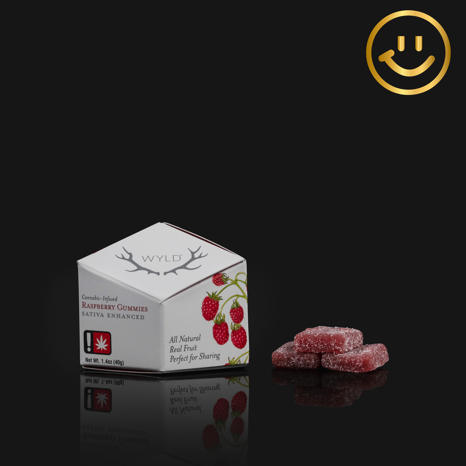 WYLD gummies are delightfully compact, slightly squishy rectangles of yummy goodness. They’re made with real fruit, so that's actually raspberry you'll taste. You can expect a sour, berry flavor and a soft consistency. Each gummy is coated in sugar crystals reminiscent of frosted buds.